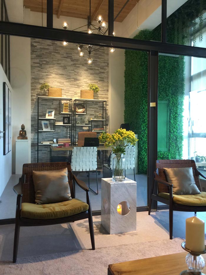 实例一:loft办公空间设计包括:形象墙、茶水间、接待区域、办公区域,在小空间中划分出如此多的区域,对于设计师来说也有一定的难度,设计师采用将硬装与软装相结合的方式,合理的划分出各个功能区域。办公区域的设计,设计师合理的利用了硬装的设计,在加上软装椅子的配合,真是天作之合,墙壁上的摆放区域也是一大亮点。俯视整个办公区域,一楼只要为办公区域,二楼只有为总经理办公室区域,空间在设计师的手中好似活下来一般,各个空间之间的配合也是恰如其分。