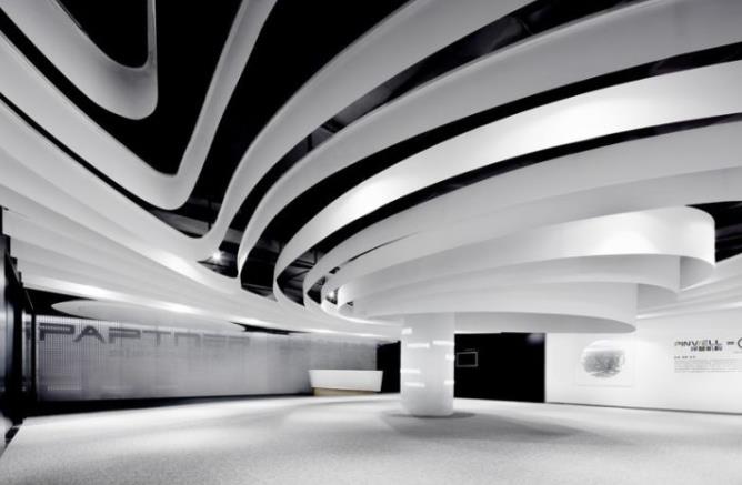 与一般的展厅相比,要采用科幻风格,这种展厅的装修空间更加紧凑,更加炫酷,展厅区域一定要大,办公区域和展厅区域风格一定要相融合。