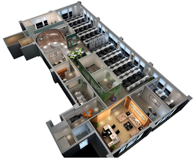 对于一个办公空间来说,"安全"是根本,安全不仅包括避免结构破坏、保证用料环保、适合员工人身安全,从空间大小、气氛元素运用到家具及软装饰摆放,如设置玻璃隔断保护人员进入公共空间的私密性,合理的设置监控、门禁、电源保护装置等是从安全规划的考虑,这些充分考虑员工的心理感受。